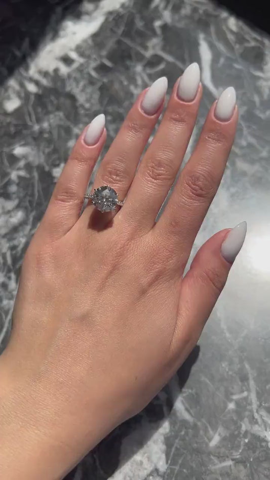 HUGE Round Ideal Cut 6.35 carat E Color VS1 Clarity IGI Certified Lab Grown Diamond Hidden Halo Engagement Ring Side Round Diamonds 18k Gold