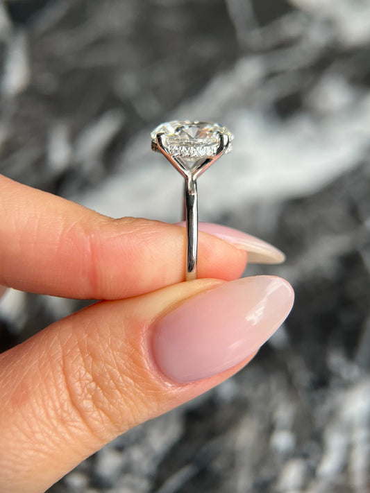 Oval Cut 4.15 carat F Color VS1 Clarity IGI Certified Lab Grown Diamond Solitaire with Hidden Halo Engagement Ring