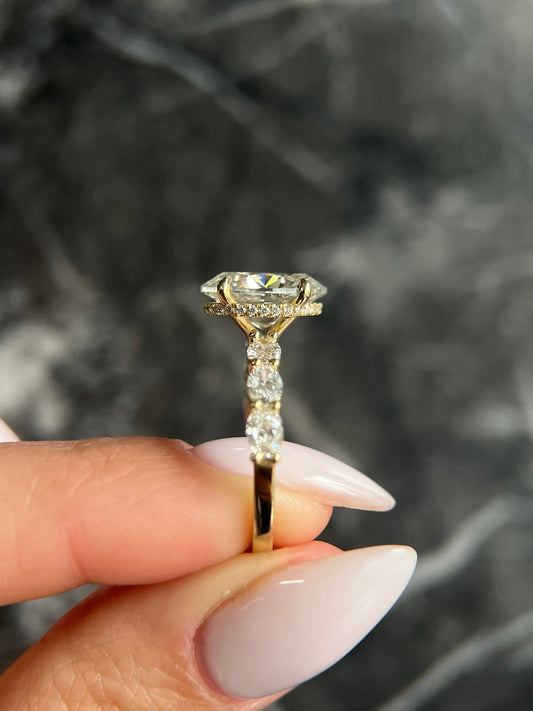 Oval Cut 3.5 carat IGI Certified E Color VS1 Clarity Lab Grown Diamond Hidden Halo Engagement Ring Side Oval & Round Cut Diamonds