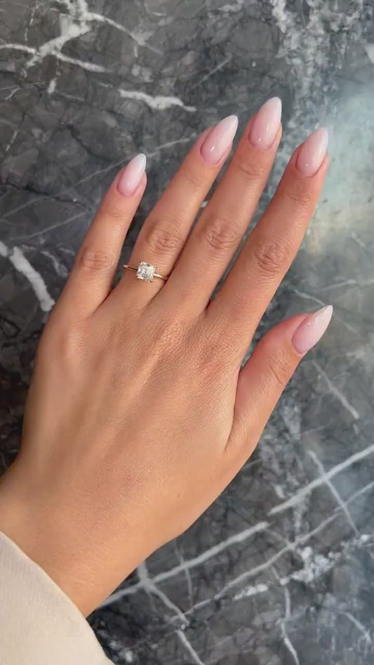 Asscher Cut (Square Emerald Cut) 1 Carat IGI Certified Lab Grown Diamond Solitaire Engagement Ring