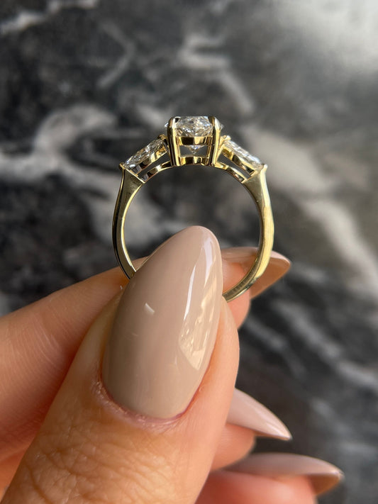 Marquise Cut 2.3 carat IGI Certified F Color VS1 Clarity Lab Grown Diamond Three Stone Engagement Ring