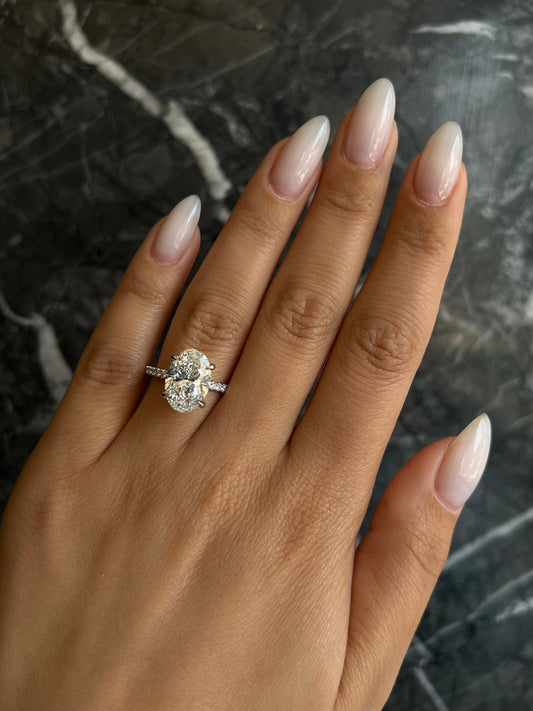 Oval Cut 4.35 carat E Color VS1 Clarity IGI Certified Oval Excellent Cut Lab Grown Diamond Hidden Halo Engagement Ring