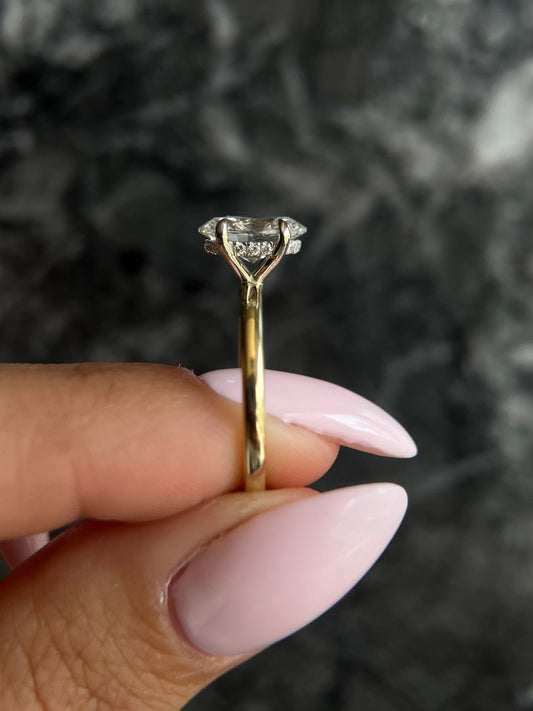 Unique Compass Set Two Tone Oval 2 carat IGI Certified F color VS1 clarity Lab Grown Diamond Solitaire Hidden Halo Engagement Ring