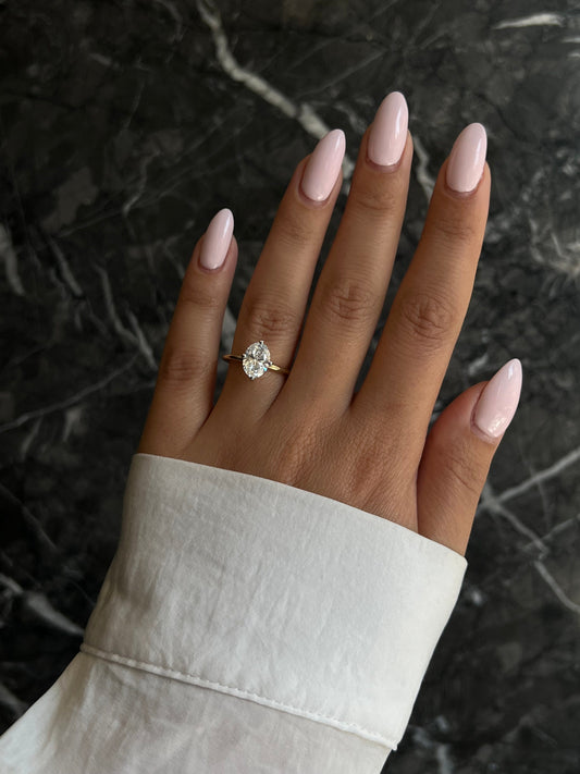 Oval 2 Carat F Color VS1 Clarity IGI Certified Lab Grown Diamond Bezel Set Solitaire Engagement Ring