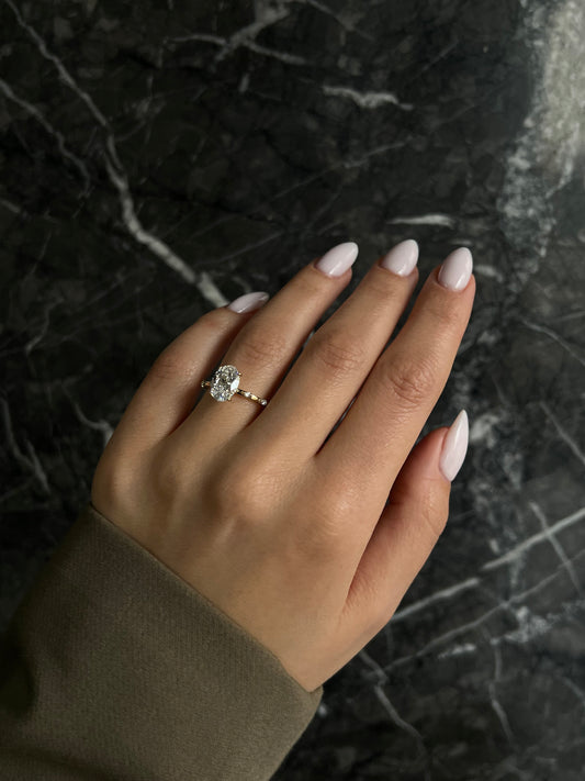 Oval 2.5 carat F Color VS1 Clarity IGI Certified Lab Grown Diamond East-West Solitaire Engagement Ring
