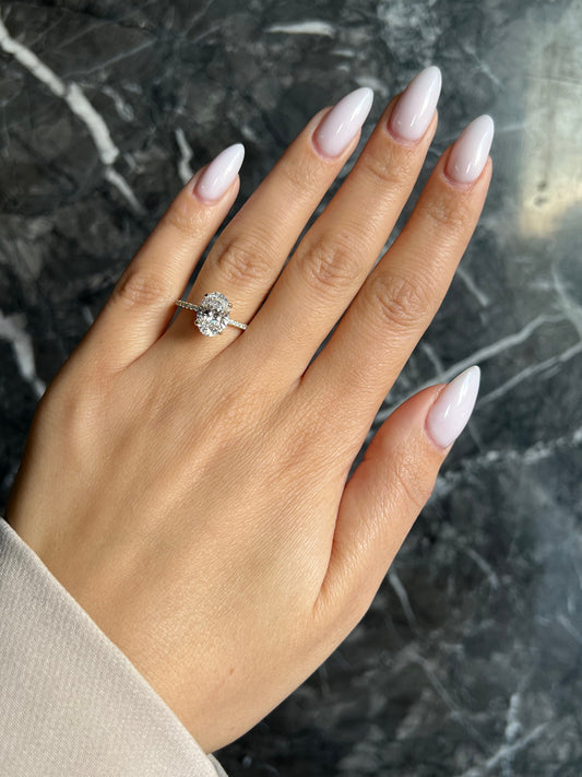 Oval Cut 1.55 carat IGI Certified D Color VVS2 Clarity Lab Grown Diamond Solitaire Hidden Halo Engagement Ring, Trendy Style