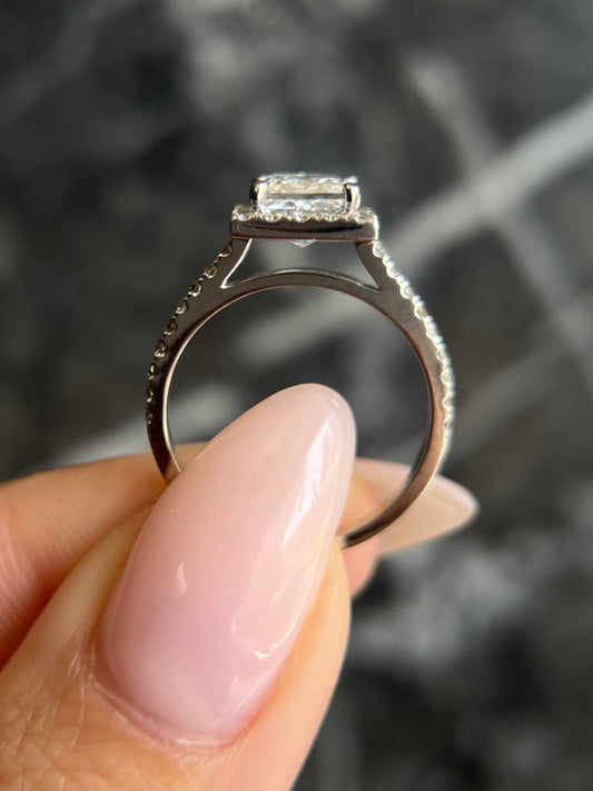 Princess Cut 1.30 carat IGI Certified E Color VVS2 Clarity Lab Grown Diamond Halo Engagement Ring, Round Side Diamonds