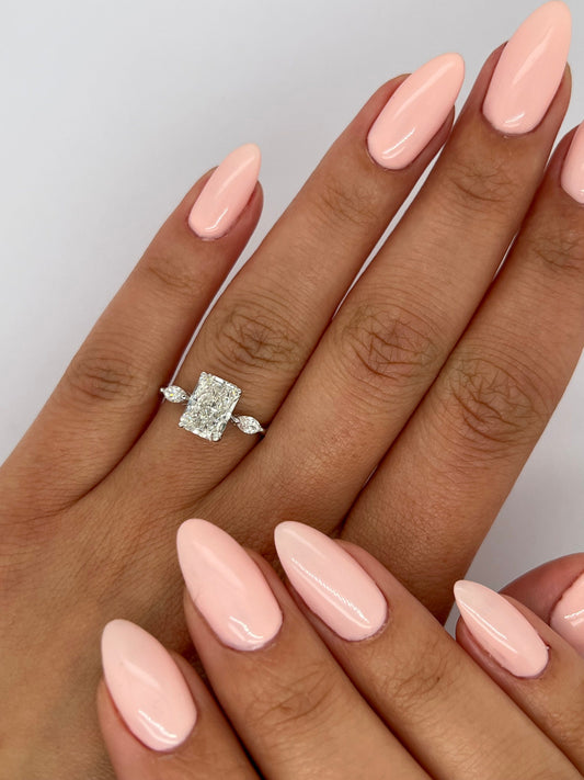 Radiant Cut 2.5 Carat F Color VS1 Clarity IGI Certified Lab Grown Diamond Engagement Ring Hidden Halo and Side Marquise Diamonds