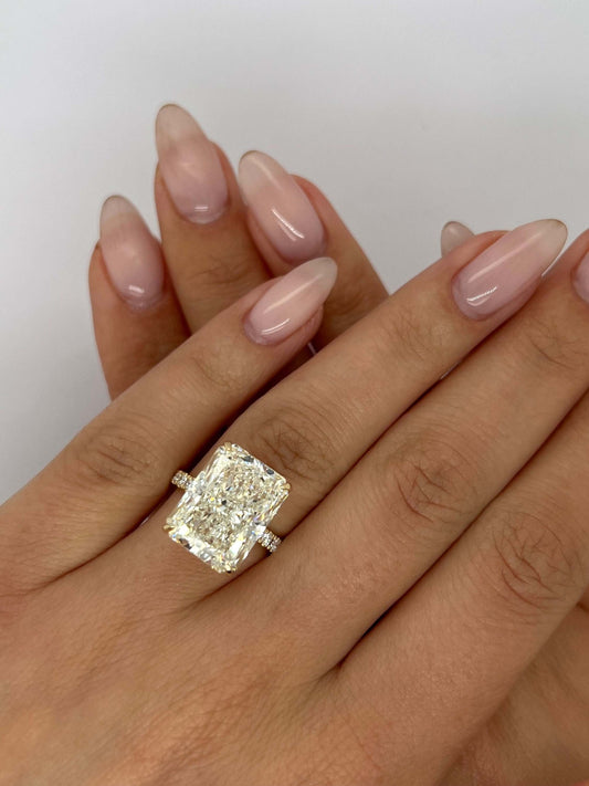 Radiant Cut 8.5 Carat IGI Certified G Color VS1 Clarity Lab Grown Diamond Engagement Ring Hidden Halo and Side Round Diamonds
