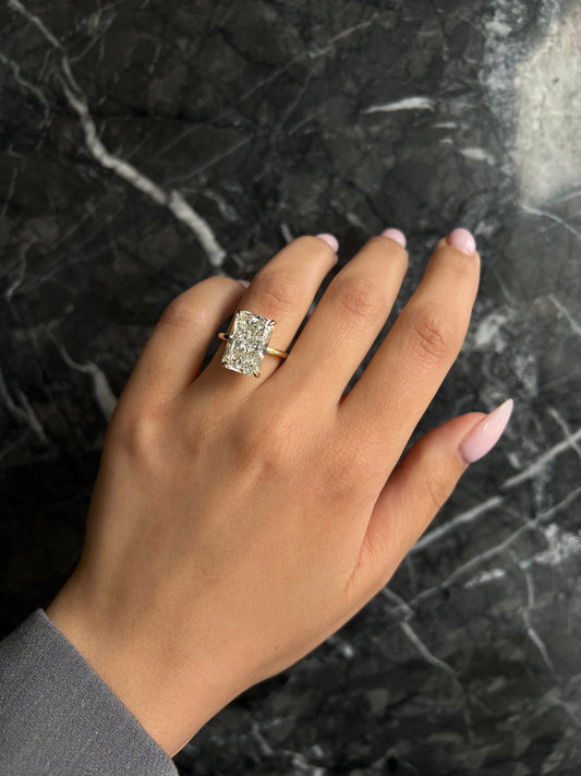 Radiant Cut 6 carat F Color VS1 Clarity IGI Certified Lab Grown Diamond Solitaire Engagement Ring, Handmade of Solid Gold
