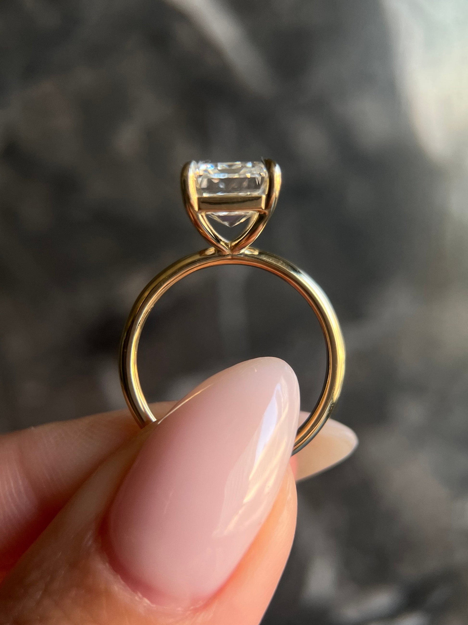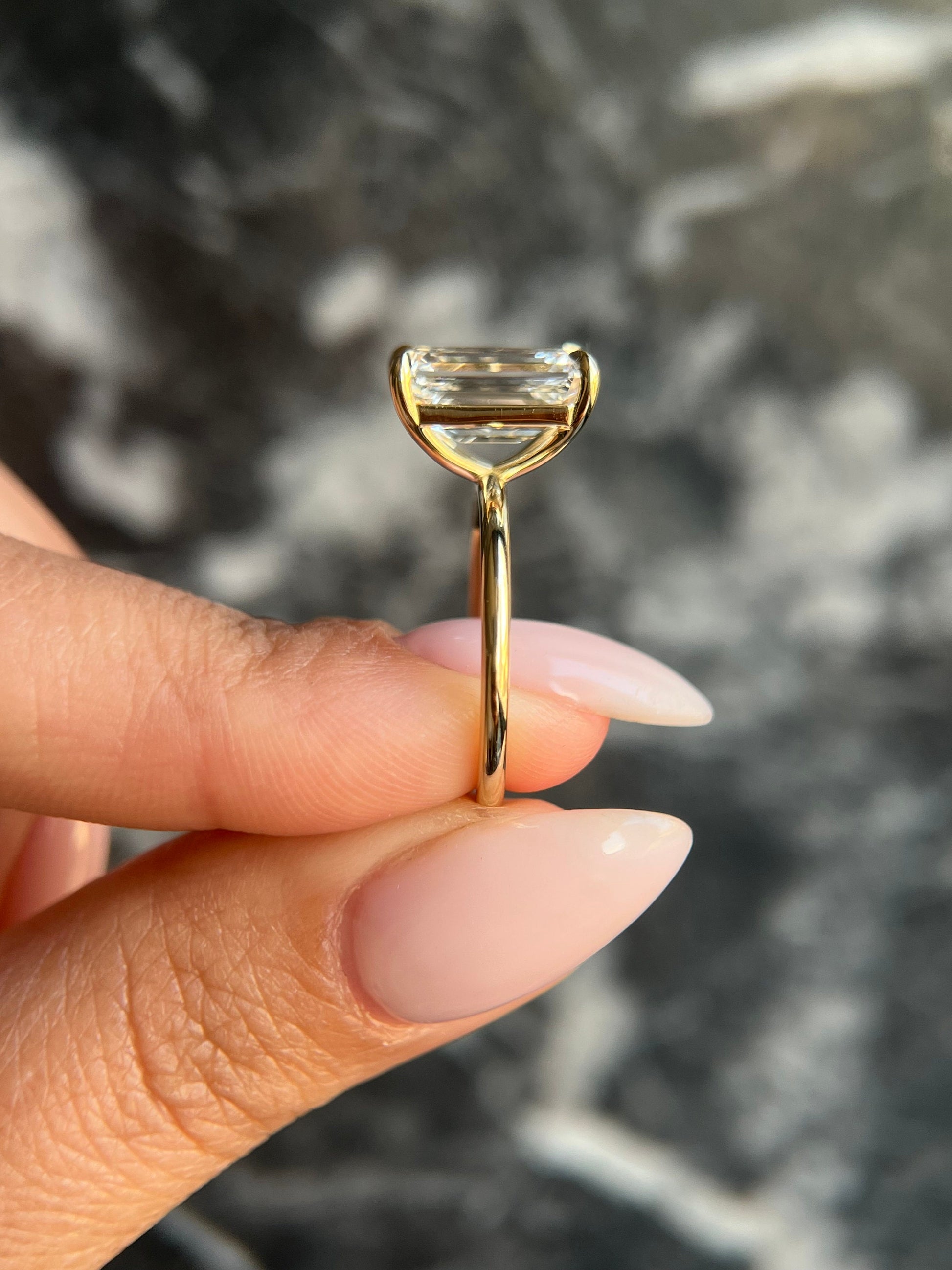 Emerald Cut 5 carat IGI Certified E Color VVS2 Clarity Lab Grown Diamond Solitaire Engagement Ring Handmade of Gold