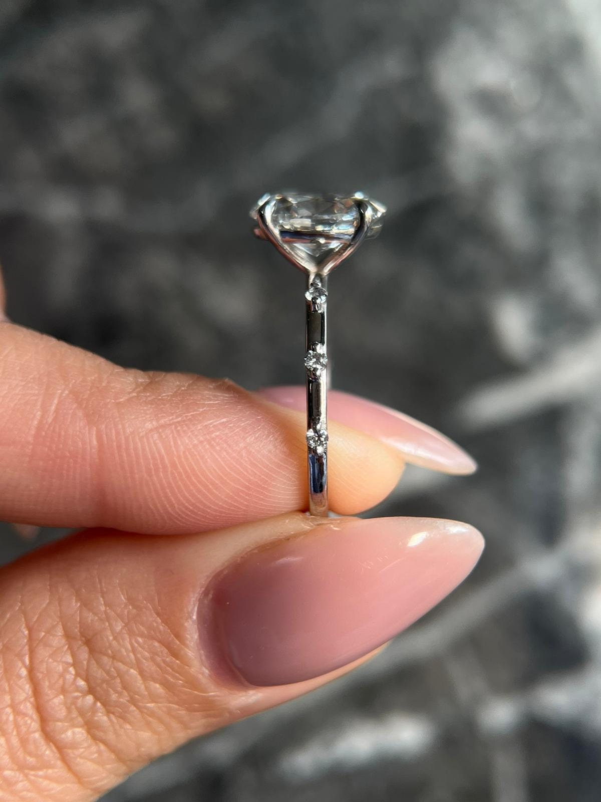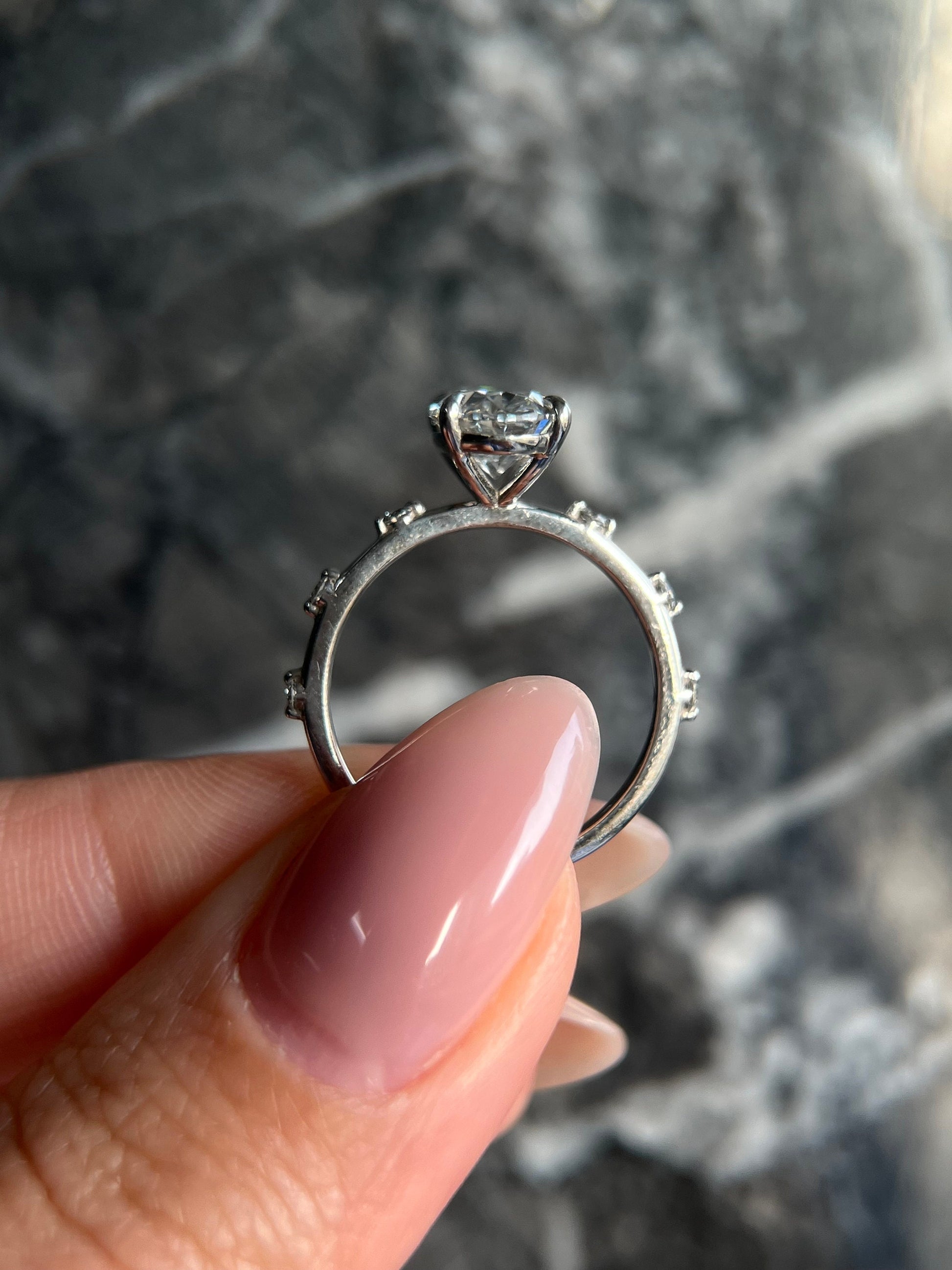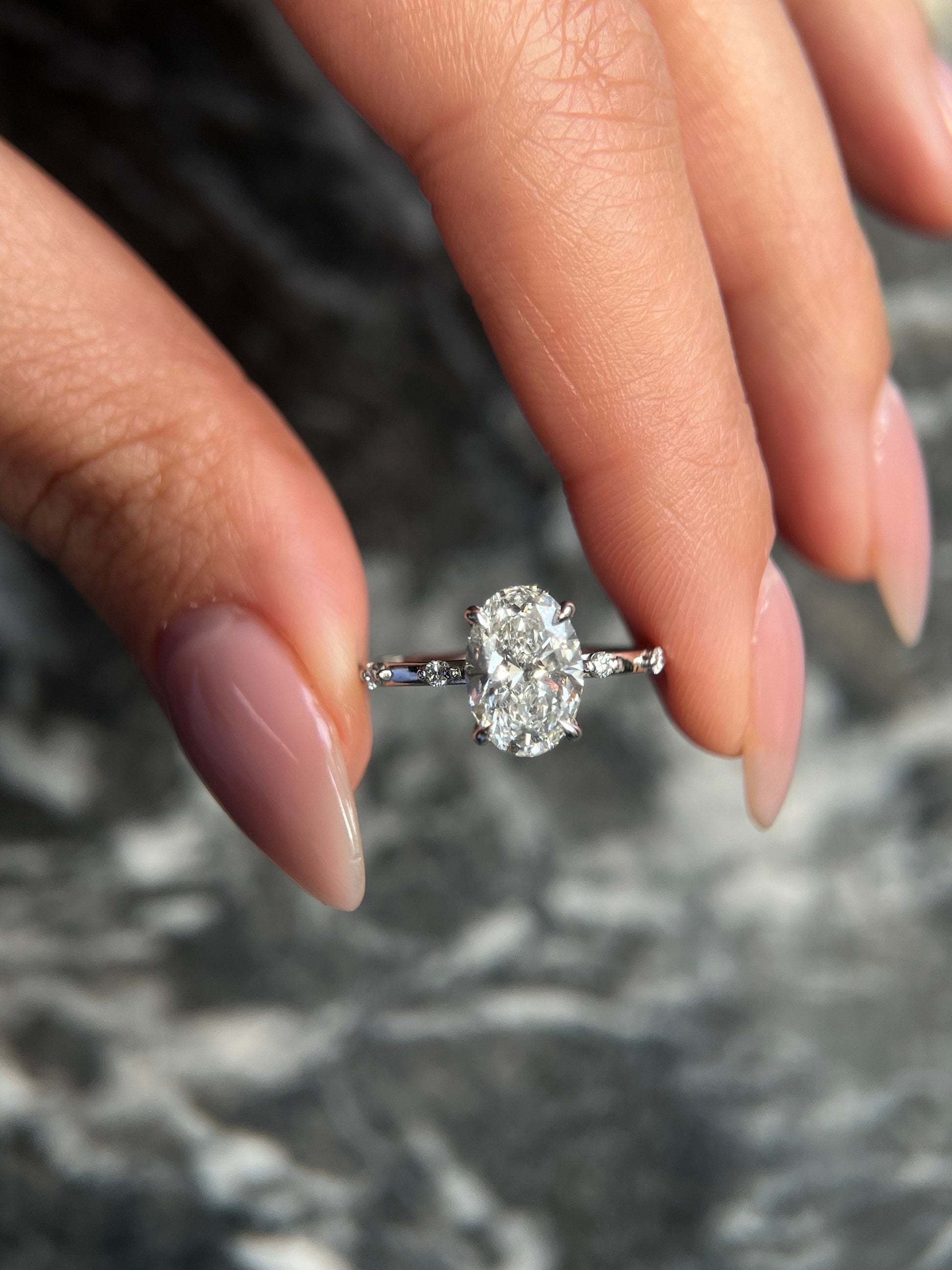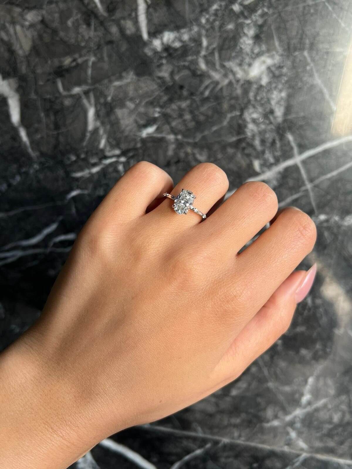 Oval Cut 1.6 Carat IGI Certified D Color VVS2 Clarity Lab Grown Diamond Engagement Ring, Ultra Thin Dainty Band Round Side Diamonds