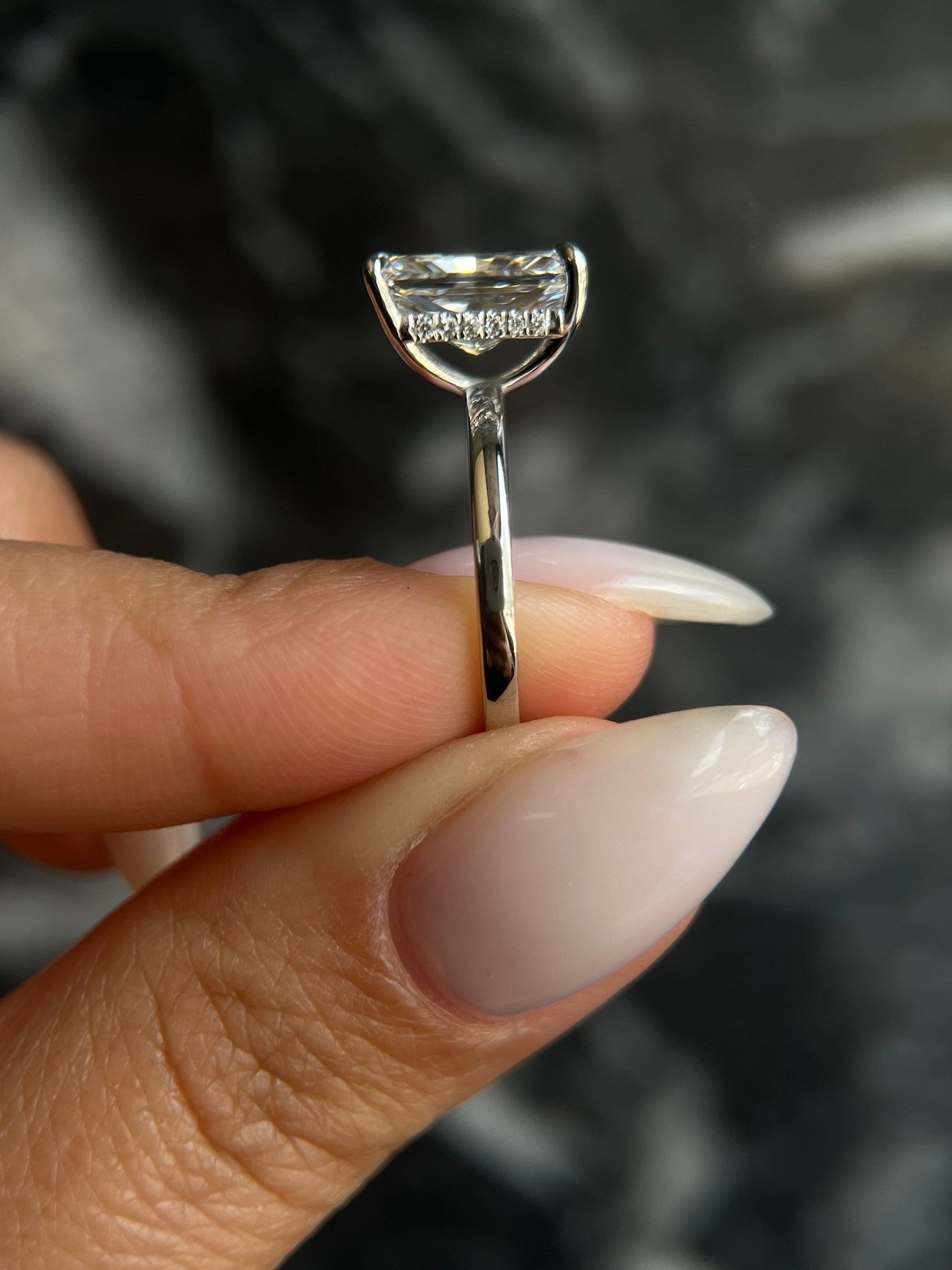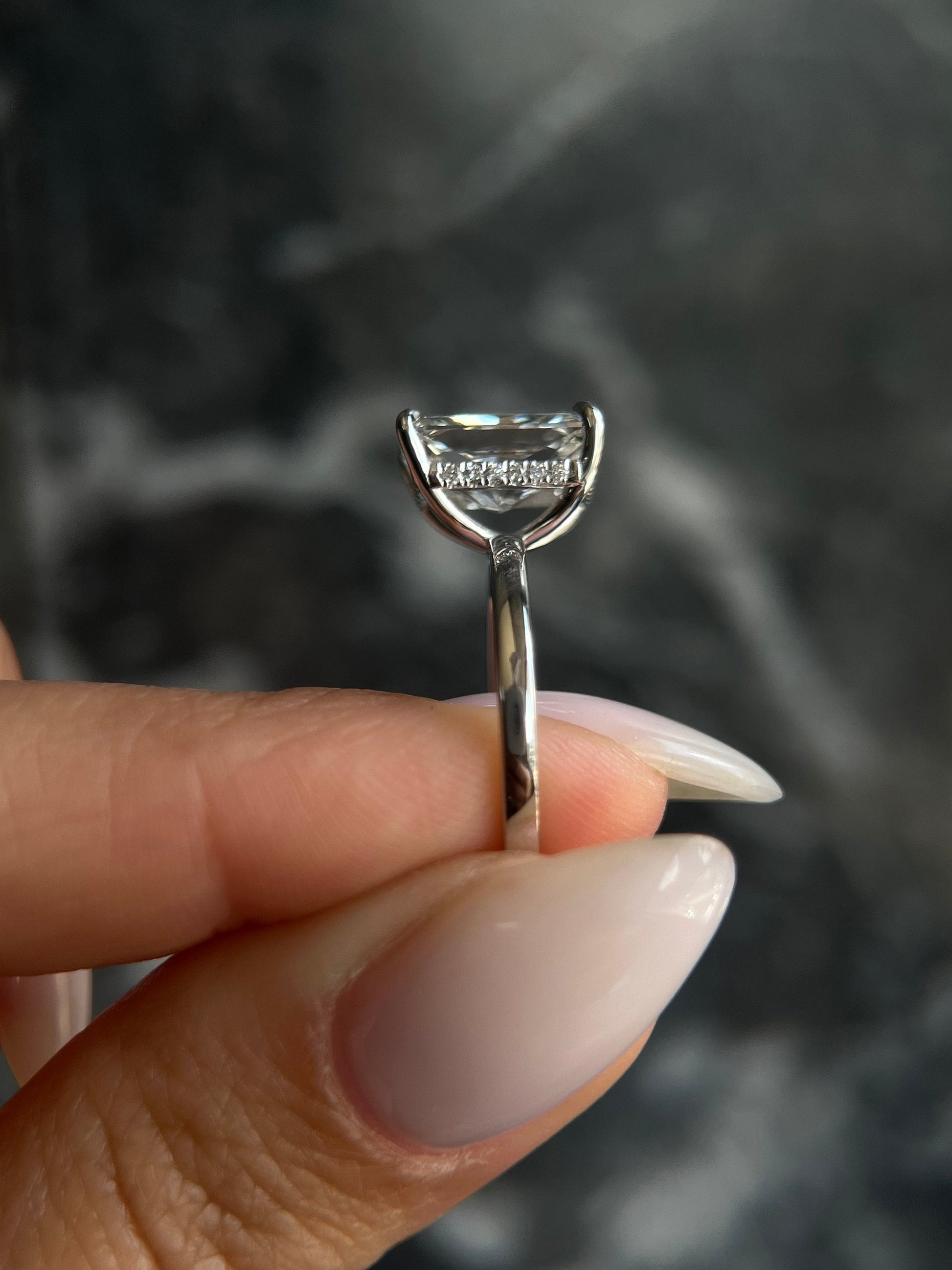 This breathtaking Radiant cut lab grown diamond engagement ring is expertly handcrafted by our skilled jewelers with the utmost attention to detail ensuring that it is of the highest quality using only the finest materials!