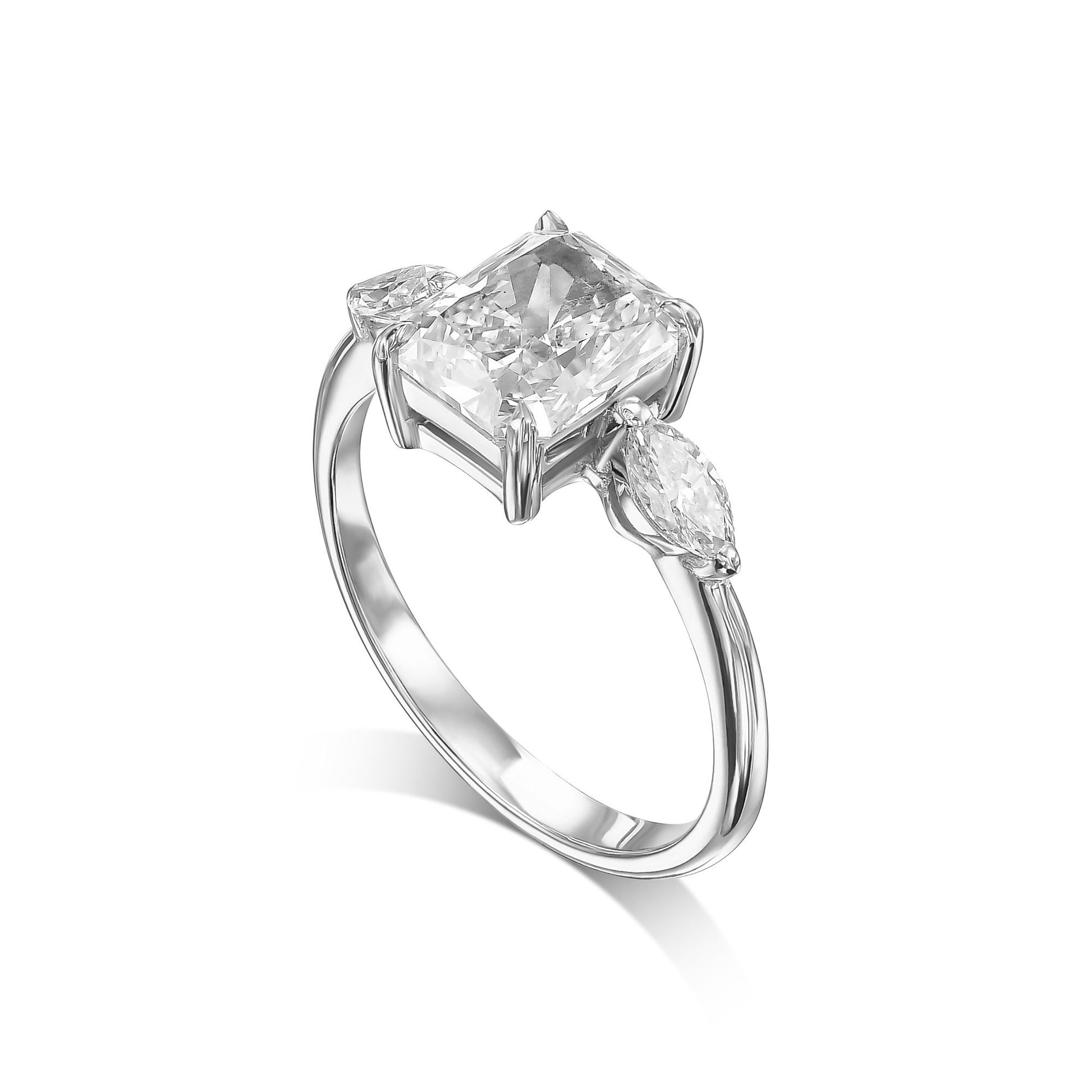 Radiant Cut 2.3 carat F Color VVS2 Clarity IGI Certified Lab Grown Diamond Engagement Ring Three Stone Ring